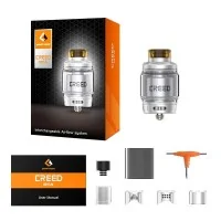 Lieferumfang: 1x Creed RTA mit 6.5 ml Selbstwickel-Tankverdampfer ◾Für grosse Wolken und gute Aromen ◾Kapazität von 4,5ml oder 6.5 ml ◾Ersatz Pyrex für 4.5 ml Tank ◾two oder singel Coil wickelbar ◾Neues Luftstromsystem
